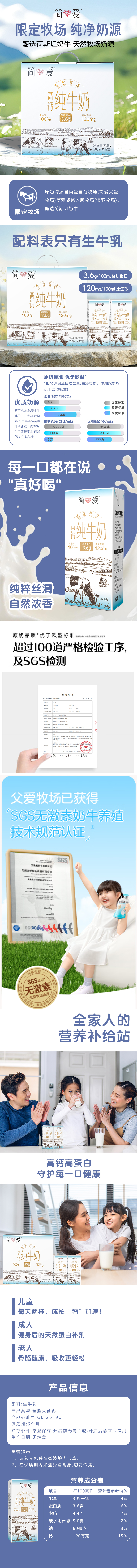 (福礼)简爱高钙纯牛奶200ml*12